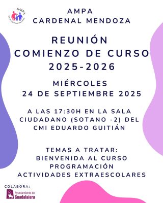 Hola Familias, El próximo Miércoles 24 de septiembre 2025 a las 17:30h, en la Sala Ciudadano del CMI tendrá lugar la primera reunión para este